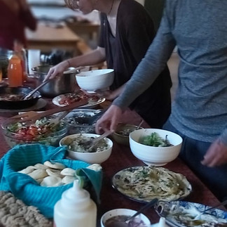 From natural orange soda (just fresh squeezed orange juice and a ginger bug), salted fermented lemons to yuca bread and hummus... everything was made with love and almost everything was grown by someone we know.