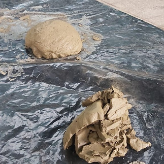 We are making clay directly from dirt and drinking hot cacao to keep warm. The clay is two diiferent colors: blue and red. We will start making some pottery soon. Maybe tomorrow.