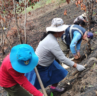 Our crew, the neighbors and the bee community all worked together to replant the area that was damaged in the fire. They worked hard with our basic tools and limited supplies. Many trees were planted. Trees whose seeds we collected.